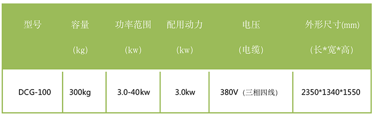 DCG-100型炒鍋技術(shù)參數(shù)表