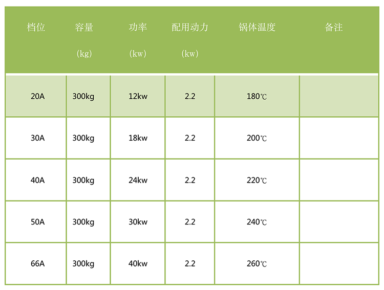 DCG-100型炒鍋加熱參數(shù)